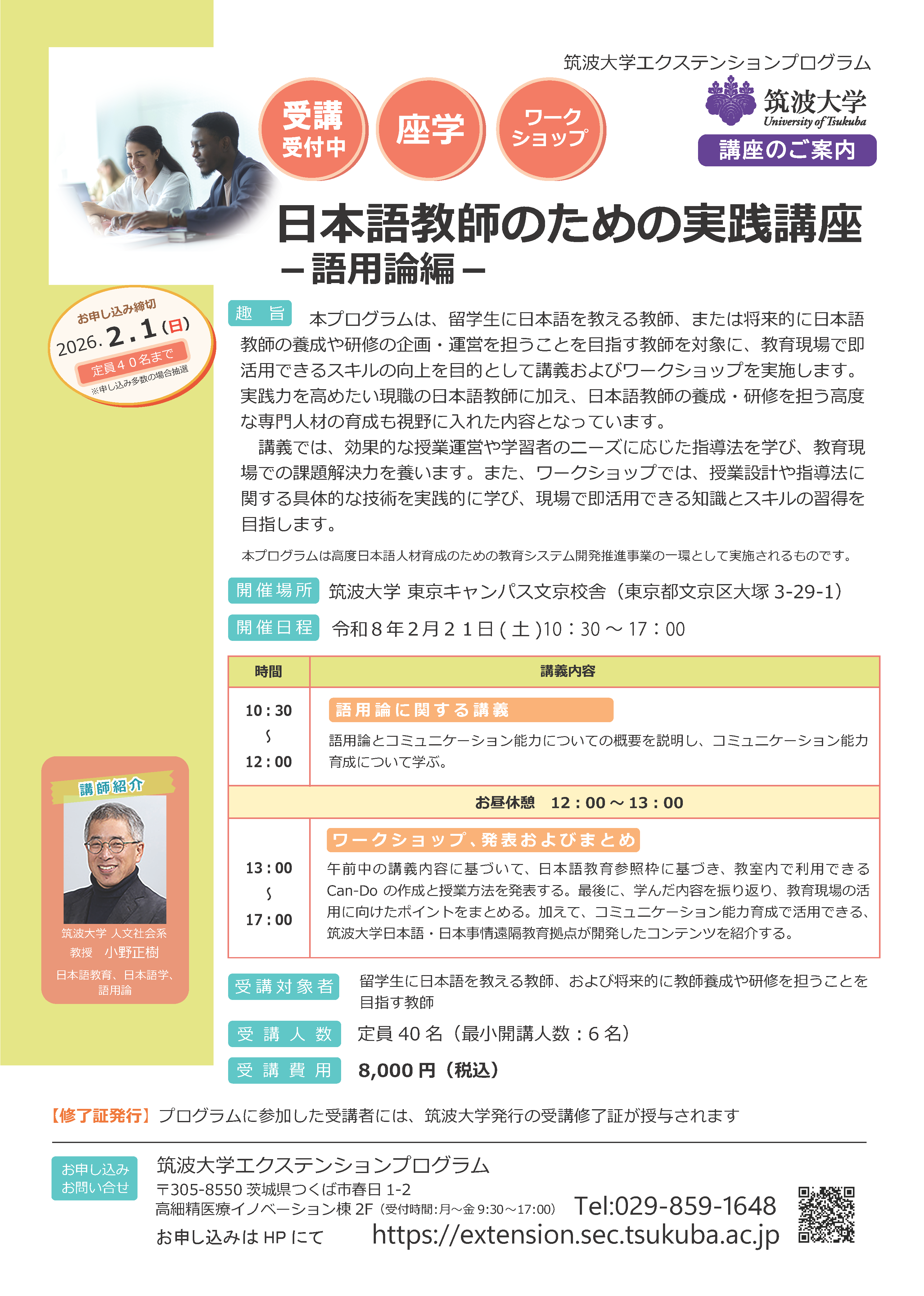 対 象:留学生に日本語を教える教師、および将来的に教師養成や研修を担うことを目指す教師